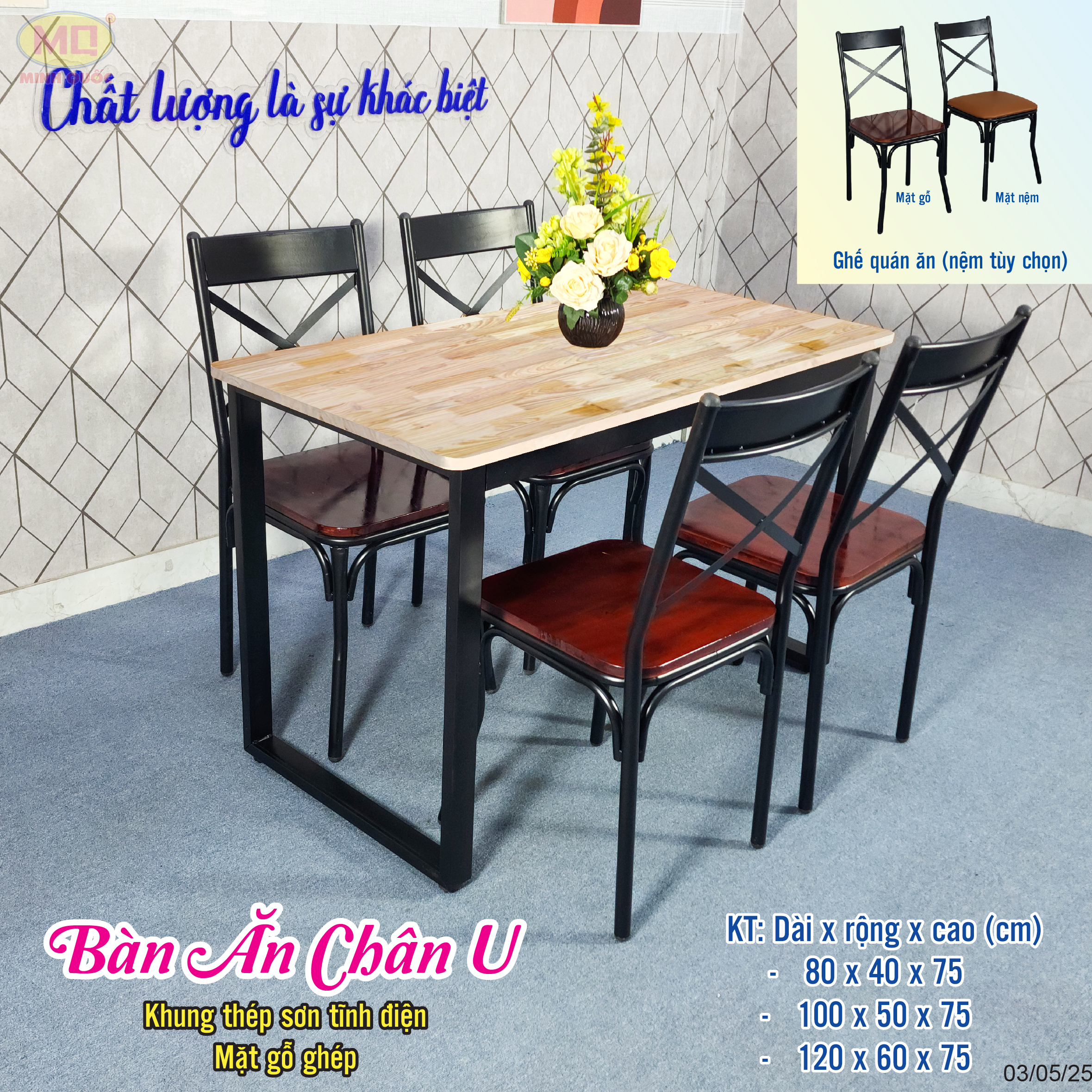 Bàn ăn chân U mặt gỗ ghép ghế quán ăn 50×100, 60×120